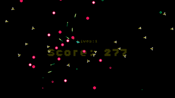 A janky, broken and ill-fated survivors-like with elements of Asteroids and Robotron.